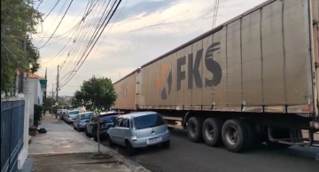 Bitrem fica travado em conversão e provoca congestionamento no Centro de Botucatu