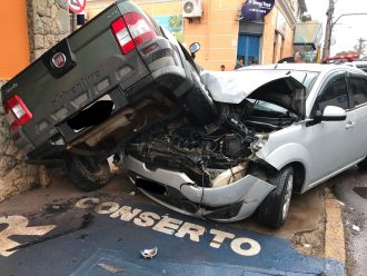 Com a batida, os dois carros foram parar em cima da calçada, sendo que caminhonete ficou tombada, prensada na parede. Por muita sorte nenhum pedestre passava pelo local e os envolvidos tiveram apenas ferimentos superficiais.
