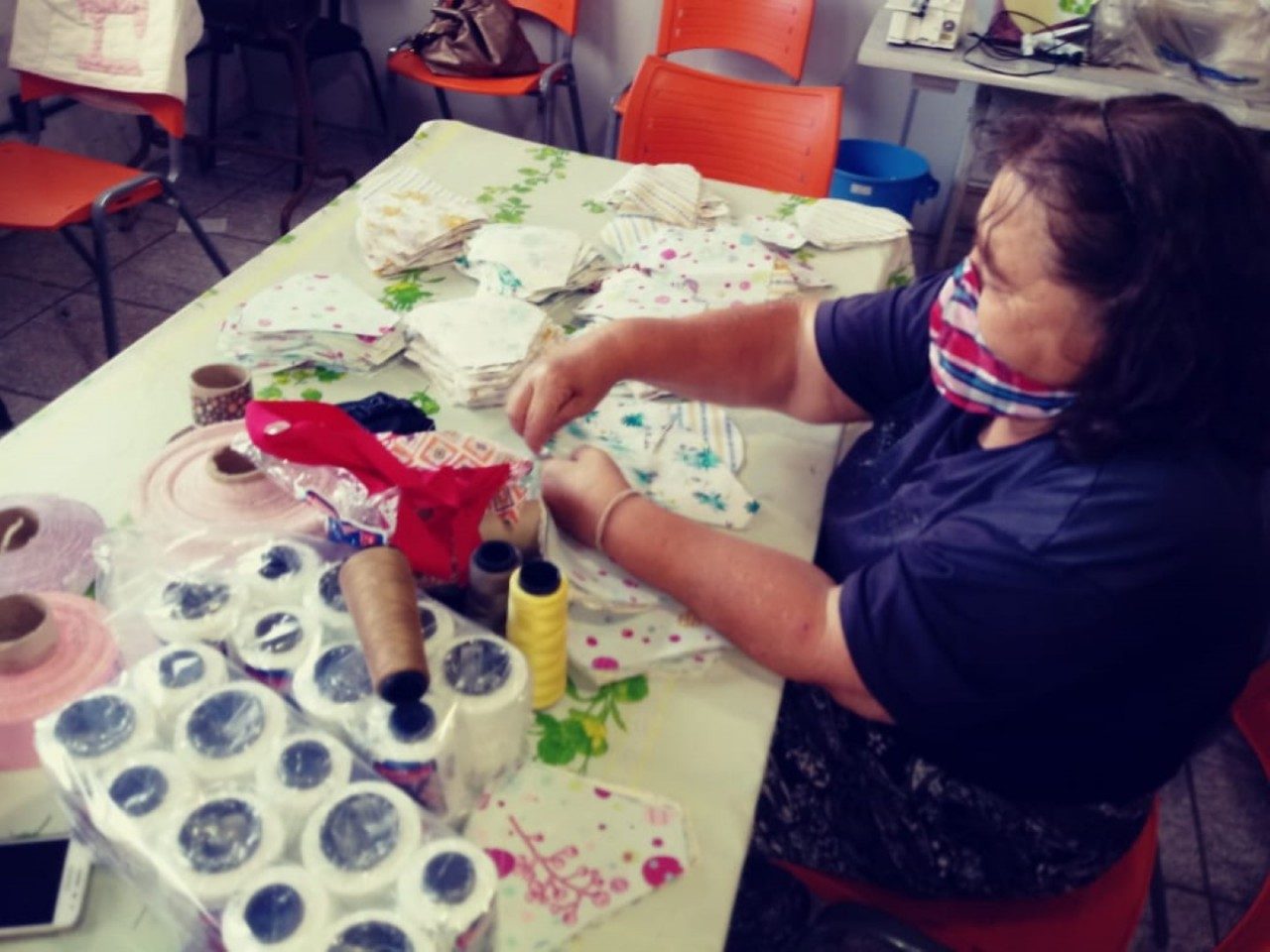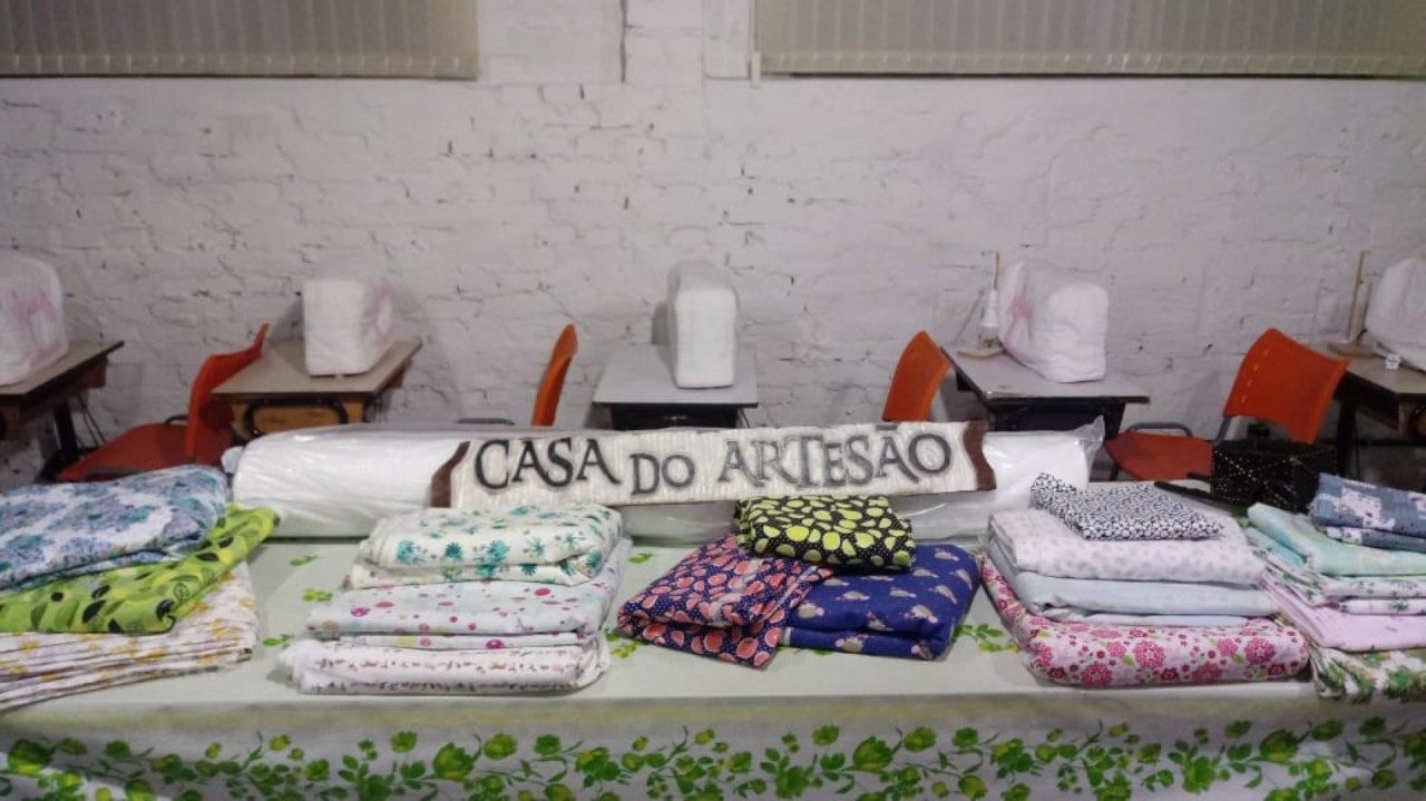 Além da doação de material, os artesãos contaram com apoio de empresas da Cidade, como a Aguiar Confecções, que cortou 90% dos tecidos usados pelas costureiras.