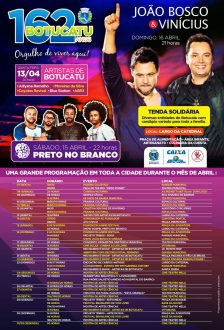 A programação completa dos eventos em comemoração aos 162 anos de Botucatu pode ser acessada no site www.botucatu.sp.gov.br.