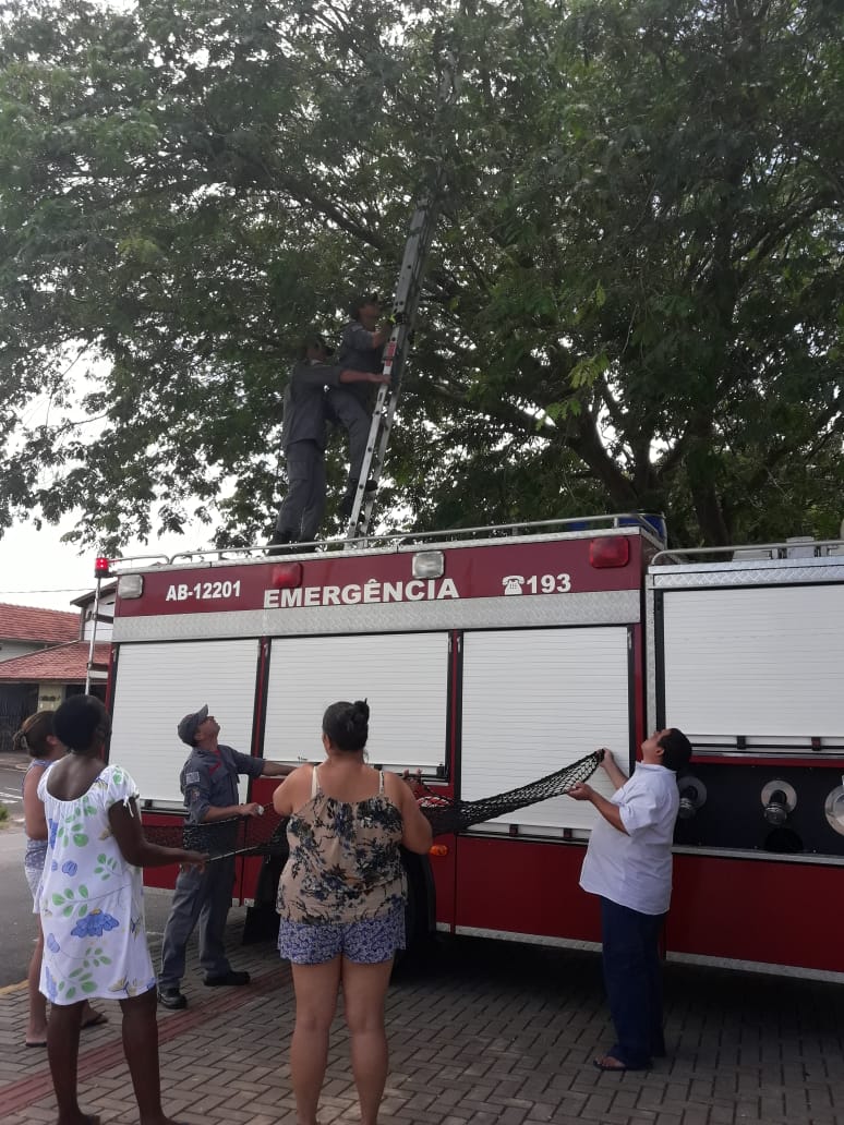 O grupamento foi chamado por munícipes que aflitos com a situação do animal, tentaram inicialmente retirar o mesmo da árvores, mas não conseguiram. O fato curioso aconteceu na Praça Marina Passos. Em poucos minutos depois da ligação, o caminhão dos Bombeiros chegou até o local com o CB Moacir, CB Luiz Paulo e o CB Lucas. “A gente ligou, mas não acreditou que eles viriam e chegaram rapidinho, foram muito atenciosos com toda a população e principalmente com o animal que estava em um ponto da árvore muito complicado, mas por sorte eles conseguiram e resgataram o animal em segurança. Todo mundo que estava acompanhando ficou muito feliz, os Bombeiros foram aplaudidos. Foi um orgulho imenso”, contou Suzana Camalionte.