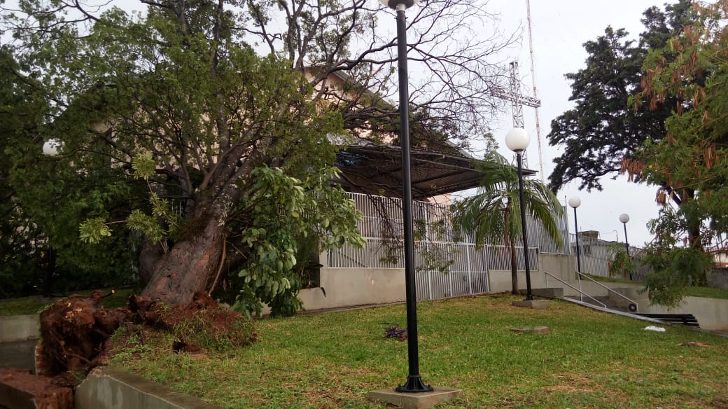 Igreja da Vila Maria é atingida por árvore durante tempestade em Botucatu