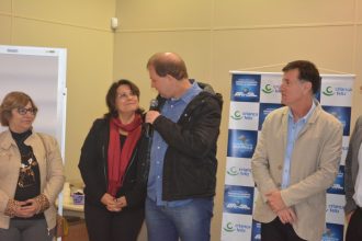 O Prefeito Mário Pardini, a Secretária Municipal de Assistência Social, Silvia Fumes, o Secretário de Educação, Valdir Paixão e a Secretária Adjunta de Saúde, Valéria Manduca, participaram da recepção aos participantes.