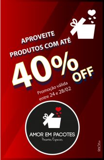 De sexta-feira, dia 24, até terça-feira, dia 28, a A Amor em Pacotes estará com uma superpromoção com produtos que podem chegar até 40% de desconto. Serão centenas de presentes e lembranças com preços incríveis