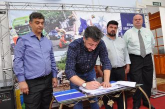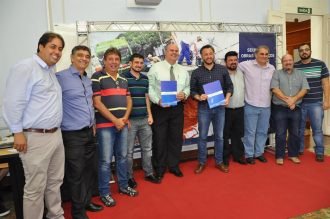 A formalização dos contratos foi realizada no Salão Azul da Secretaria Municipal de Educação, com a presença do secretário de Obras, André Peres; Henrique Caramano, gerente geral da Caixa Econômica Federal em Botucatu; além de Sérgio Amadeo, gerente regional de governo desta mesma instituição financeira.