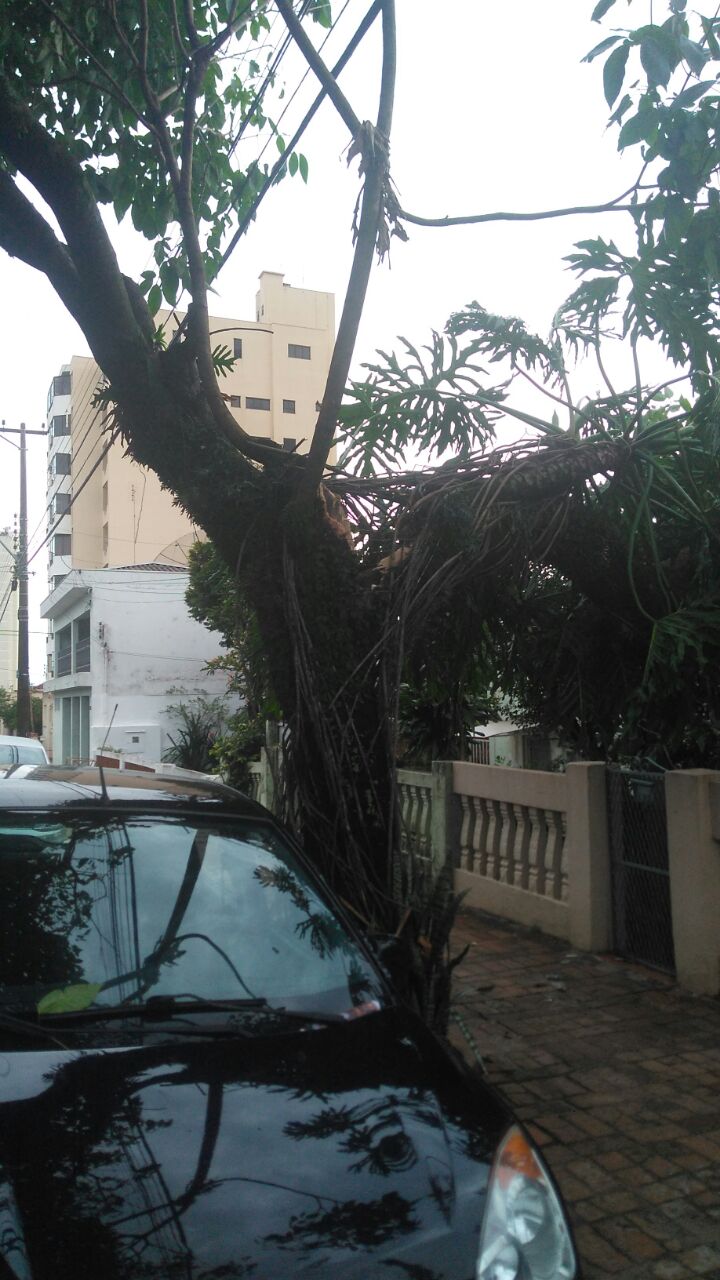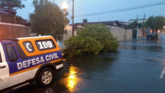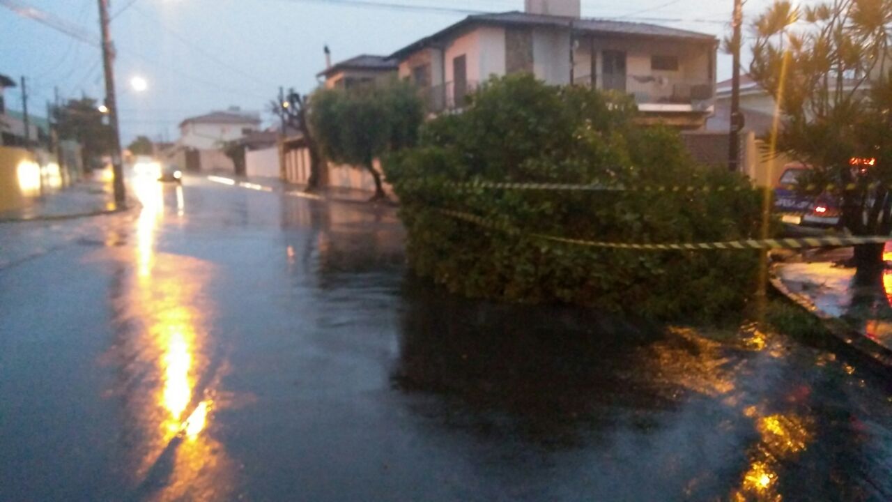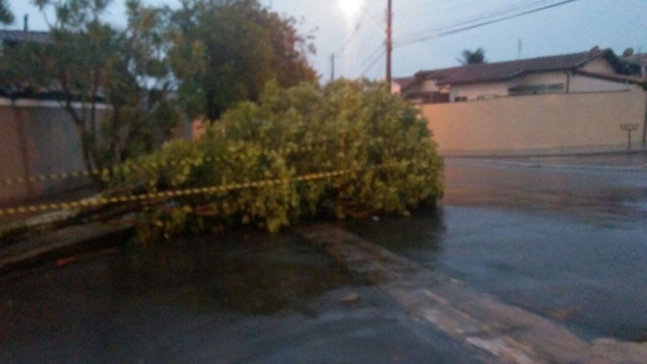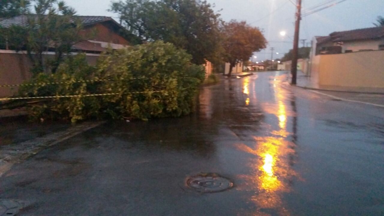 Houve também a queda uma árvore na Rua Justino Miranda de Camargo, no Jardim Paraíso. A árvore, que estava na calçada, obstruiu a via com a queda, mas o setor responsável esteve no local para a remoção, segundo a Defesa Civil.