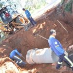 Na Rua dos Girassóis, onde foi construído o sistema de galerias para captação das águas das chuvas, resta apenas um pequeno trecho para o assentamento de guias e sarjetas, etapa que precede a preparação da base para receber o asfalto. Na Rua das Tulipas, que possui um trecho com aclive bastante acentuado, uma equipe avança com assentamento de tubos do sistema de galerias de águas pluviais. Enquanto isso, na Avenida das Primaveras, outra frente trabalha na limpeza e retirada de material vegetal para definição do traçado que permitirá o encaixe com o trecho já pavimentado, próximo a ASFA.