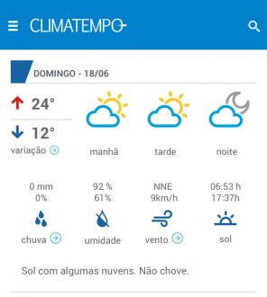 Apesar da temperatura ainda baixa, o sol deve ser forte em toda a região, proporcionando belos cenários do nascer ao pôr do sol. A umidade relativa do ar ficará entre 60% e 90%.