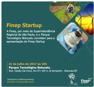 O Parque Tecnológico Botucatu receberá nesta sexta-feira, 21, às 10 horas, a visita de representantes da Finep (Financiadora de Estudos e Projetos) para a apresentação de um edital que disponibilizará até R$ 1 milhão para ideias inovadoras desenvolvidas por startups. Estarão presentes Márcio Yoshihiro Ikegami e Rafael Paganotti Figueiredo, gerentes da Superintendência Regional da Financiadora. A intenção é alavancar empresas que estejam em fase final de desenvolvimento do produto, para colocar no mercado, ou que precisem ganhar escala de produção.