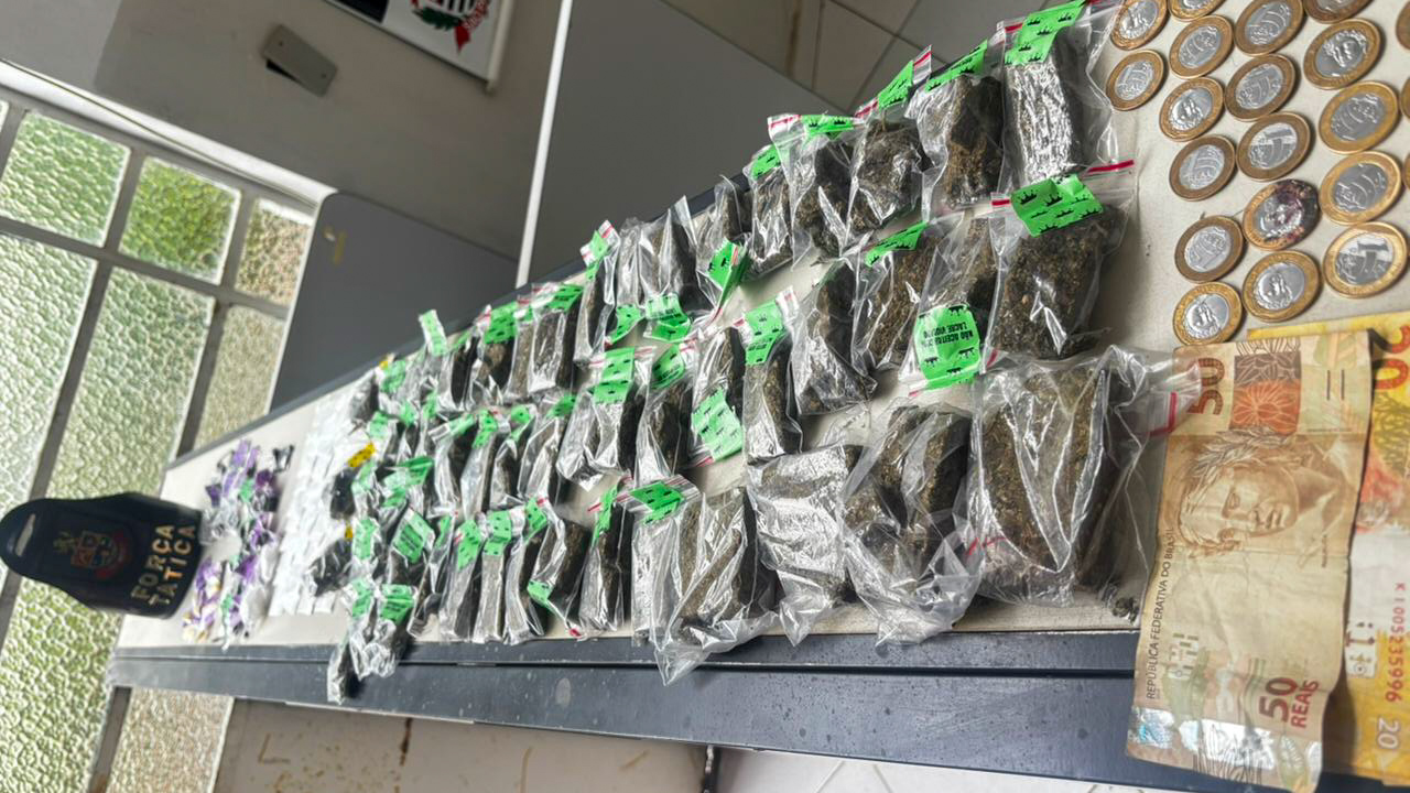 Ao retornar ao local onde a fuga começou, os policiais encontraram, dentro da bolsa descartada pelo suspeito, mais 15 porções de maconha e 37 porções da mesma droga.
