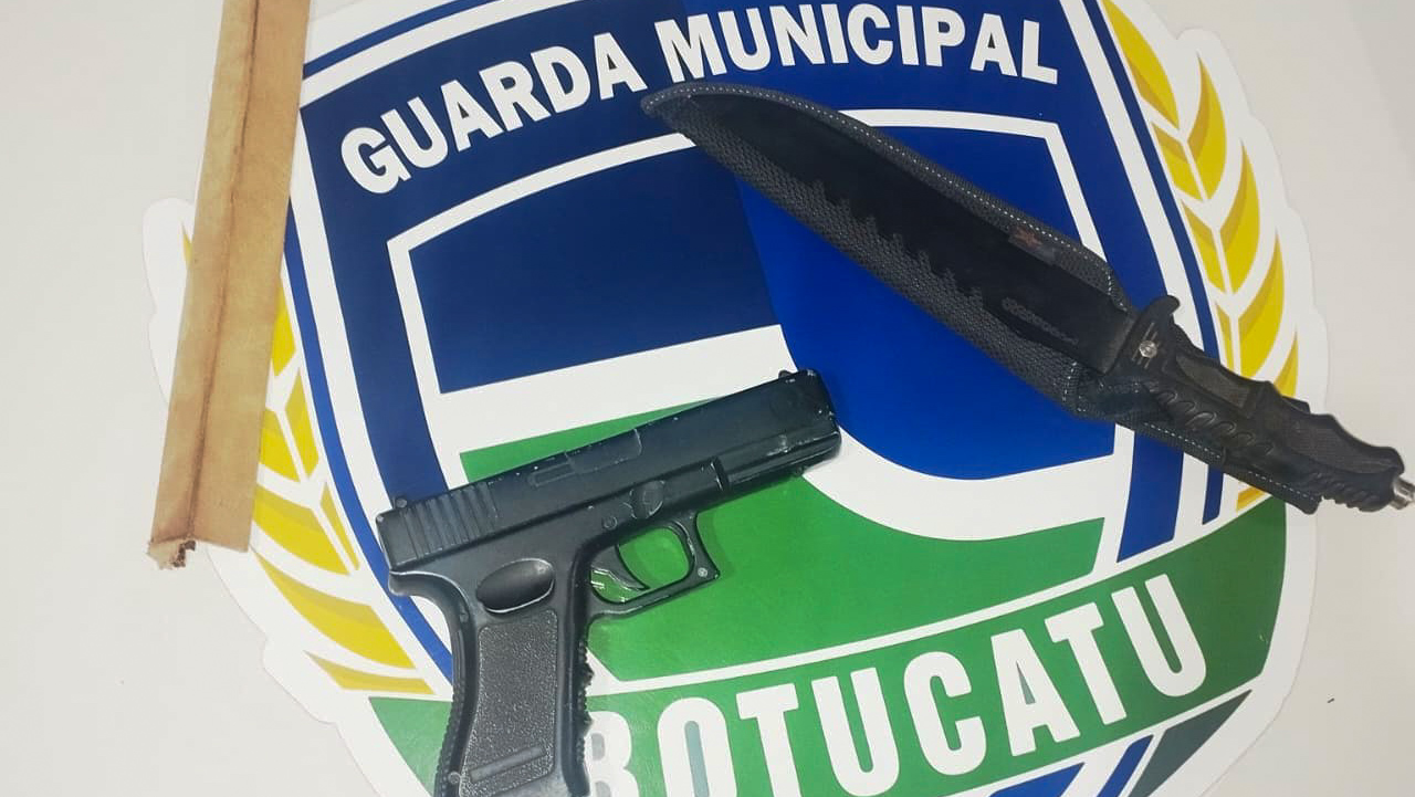 Diante das informações, os guardas vistoriaram o veículo do suspeito, um Fiat Uno vermelho, estacionado no quintal. No interior, localizaram um facão sobre o painel e um simulacro de pistola calibre .40, de cor preta, sob o banco do motorista. O homem admitiu ser o dono do simulacro, mas não soube explicar o motivo de tê-lo.