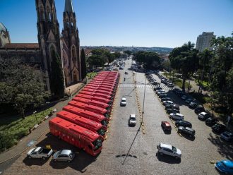 A Irizar do Brasil, com sede em Botucatu, apresentou nesta sexta-feira, dia 07, uma parte da frota de ônibus que será enviada ao Peru. Os carros ficaram expostos no largo da Catedral.