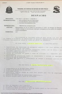 “A matéria comporta uma análise mais pormenorizada com a cautela que o caso requer,diante dos indicativos de confronto com a lei ou jurisprudência da Casa, em face do teor de algumas insurgências relatadas. Determino também com fundamento no paragrafo único, número 10, do artigo 53 do RITCESP, que o correspondente procedimento licitatório seja sustado de imediato e assim permaneça até que profira decisão fonal sobre o caso”, diz parte do despacho do Tribunal de Contas do Estado, assinado pelo Conselheiros Antônio Carlos dos Santos.