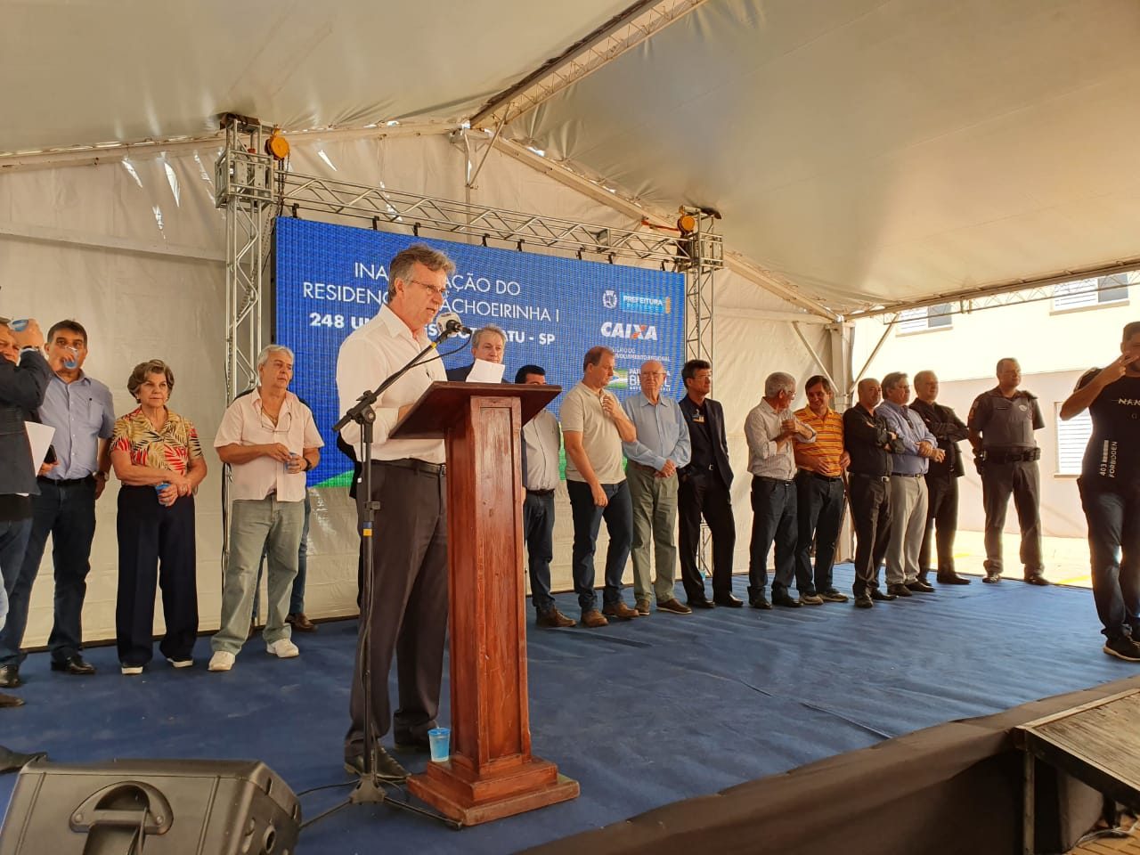 Em discurso, o Prefeito Mário Pardini lembrou do esforço da administração para que o Cachoeirinha virasse realidade. Ele citou a qualidade do projeto e dos apartamentos.