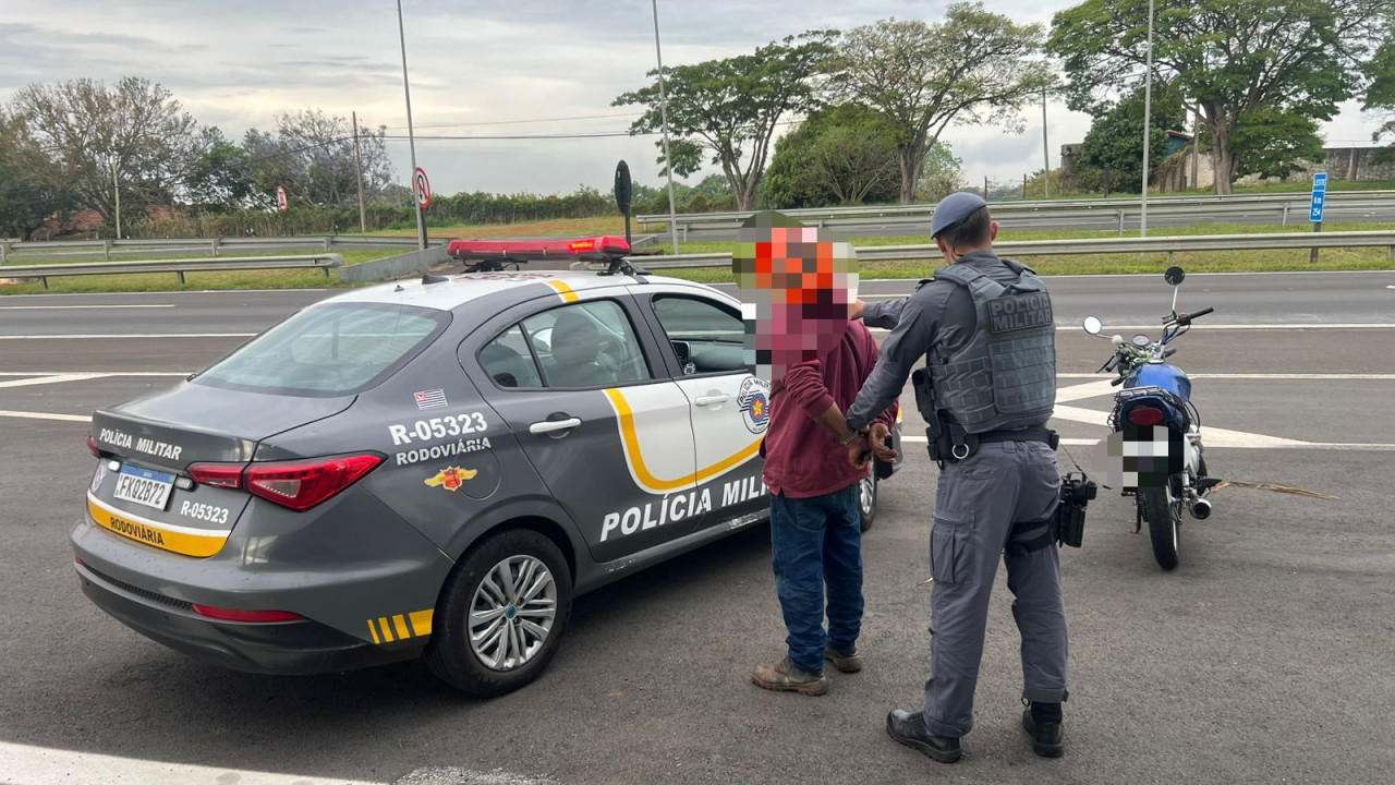 Durante patrulhamento pela Rodovia Antônio Butignoli, na altura do quilômetro 1, sentido sul (Unesp), policiais militares flagraram uma motocicleta Suzuki, de cor azul, com emplacamento divergente do veículo original.