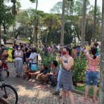 Manifestante se reuniram pela manhã deste sábado, dia 12, na Praça Rubião Junior, Largo da Catedral em Botucatu, após as mortes de Tamanduás na Rodovia Gastão Dal Farra nas últimas semanas. Um comboio saiu da Rodovia e percorreu as ruas da cidade até o ponto de concentração.