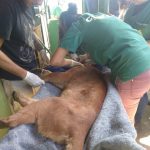 Em uma ação integrada entre CEMPAS (Centro de Medicina e Pesquisa em Animais Selvagens da Unesp), Polícia Ambiental e Bombeiros, o animal foi sedado para poder realizar o resgate. Segundo informações das equipes que trabalhavam no local, trata-se de um animal adulto, que foi atingida por um dardo tranquilizante.