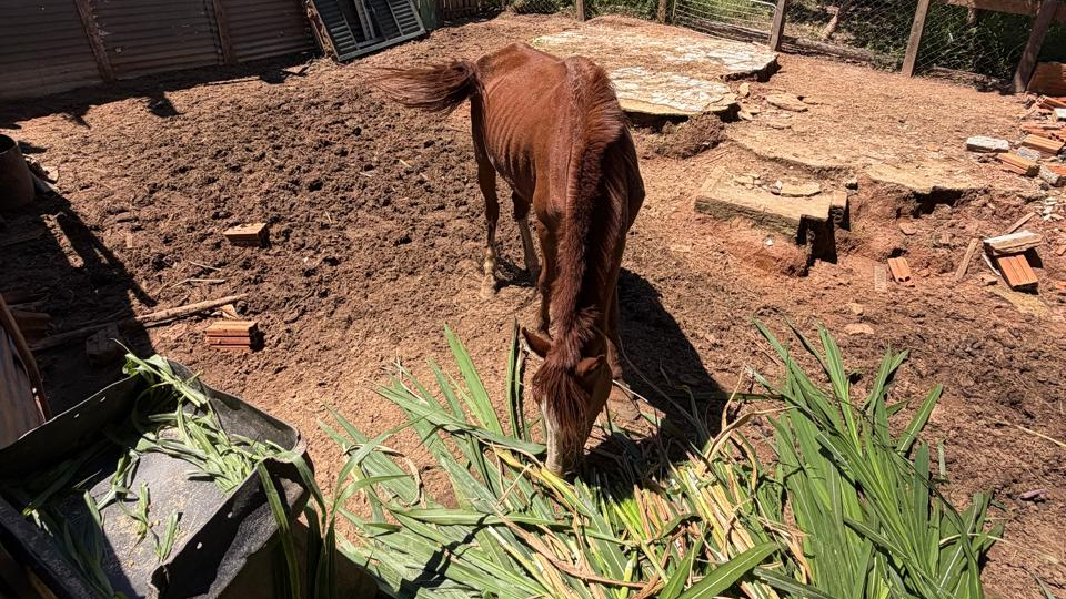 A Polícia Civil apura um caso de maus-tratos a animal doméstico e manutenção irregular de aves silvestres em um imóvel residencial no bairro Jardim Bons Ares, em Botucatu. Durante diligências, os policiais localizaram um cavalo em estado de magreza extrema, mantido em condições insalubres, em meio a entulhos de construção. No local, foi constatada a ausência de alimentação adequada e água em condições impróprias para consumo.