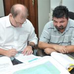 A assinatura foi realizada no gabinete do Prefeito e contou com a participação do Vice-prefeito e Secretário de Infraestrutura, André Peres; e Rodrigo Novais, sócio da Tecnoplan, empresa que executará a obra.