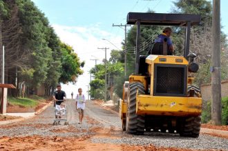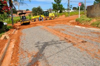 A primeira via contemplada é a Rua das Violetas, onde está instalada a creche João Paulo II. Depois da implantação do sistema de galerias para escoamento adequado das águas de chuva, da construção de guias e sarjetas e execução de toda a base, a equipe de pavimentação da Secretaria Municipal de Infraestrutura começou os trabalhos de asfaltamento no local.