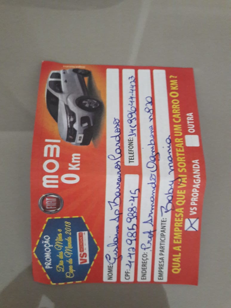 Quem comprou nas lojas da campanha, recebeu cupons para participar. O carro que foi sorteado é um Fiat Mobi, avaliado aproximadamente em R$ 32 mil. O sorteio ocorreu na Praça do Bosque.