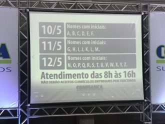 Liliane adiantou ainda que o processo irá atender os candidatos em dias específicos, conforme cronograma estabelecido pela empresa. “A partir de quarta-feira, dia 10, eu esterei aqui com a minha equipe de RH para atender a todos os candidatos”, finalizou. O cronograma ficou assim: Dia 10 serão atendidas pessoas com nomes iniciados em A, B, C, D, E e F. Dia 11 G, H, I, J, K, L e M. Por fim, dia 12 nomes iniciados em N,O, P, Q, R, S, T, U, V, W, X, Y e Z. O horário de atendimento será das 8 às 16 horas, pessoalmente na própria loja.