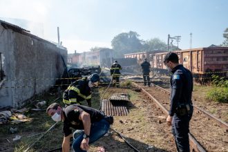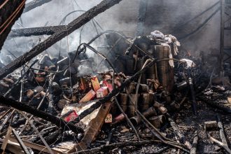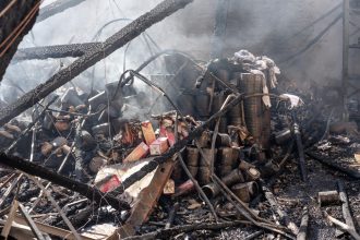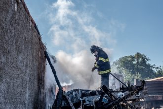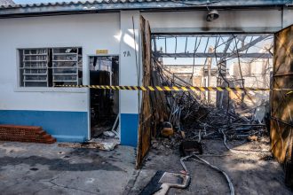 Foram destruídos milhares de testes de coronavírus que estavam guardados na estrutura consumida pelas chamas. O caso ainda é investigado. (Veja o vídeo acima e fotos abaixo)