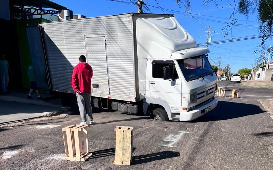 Esse é o segundo caso semelhante registrado na cidade em poucos dias. No início da semana, outro caminhão ficou preso após o asfalto ceder na Rua Castro Alves, na Vila Antártica.