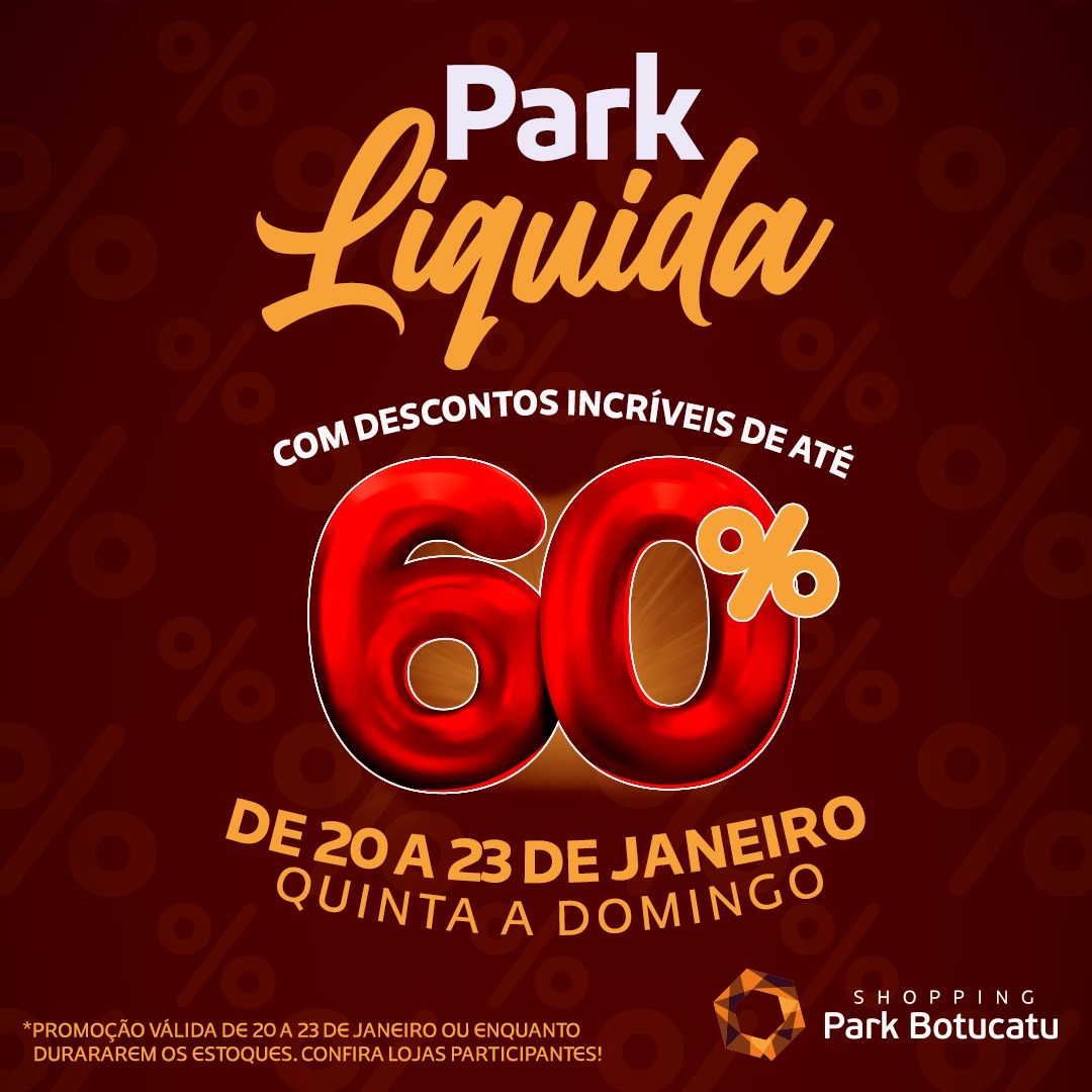 De 20/01 a 23/01, o Shopping Park Botucatu irá realizar a campanha de liquidação Park Liquida. A ação tem por objetivo auxiliar os lojistas com as vendas de estoques e peças de final de coleção.