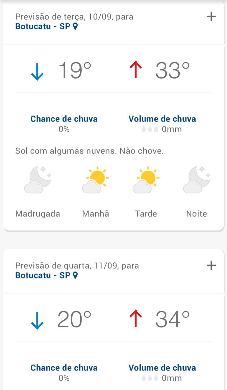Em Botucatu, segundo o Climatempo, a terça-feira poderá chegar a 33 graus. Já na quarta-feira, dia 11, a temperatura poderá chegar a 34 graus, com sensação térmica ainda maior.