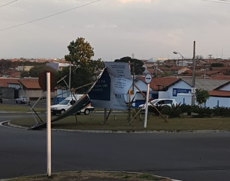 Na rotatória do 24 de maio, perto da Gastão Dal Farra, uma placa das obras na região desabou com o vento. Já no Jardim Paraíso internautas relataram a queda de um poste.
