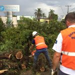A Defesa Civil precisou cortar toda a árvore e limpar a via que estava repleta de galhos e fio do poste atingido. Equipes dos Bombeiros, Prefeitura e CPFL também atuaram no local.