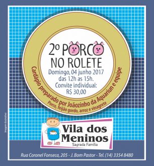 Associação tradicional em Botucatu, a Vila dos Meninos “Sagrada Família” irá realizar no dia 04 de junho, um domingo, mais um almoço para arrecadar recursos para a manutenção dos trabalhos oferecidos. Pelo segundo ano, o cardápio será o famoso “Porco no Rolete”.