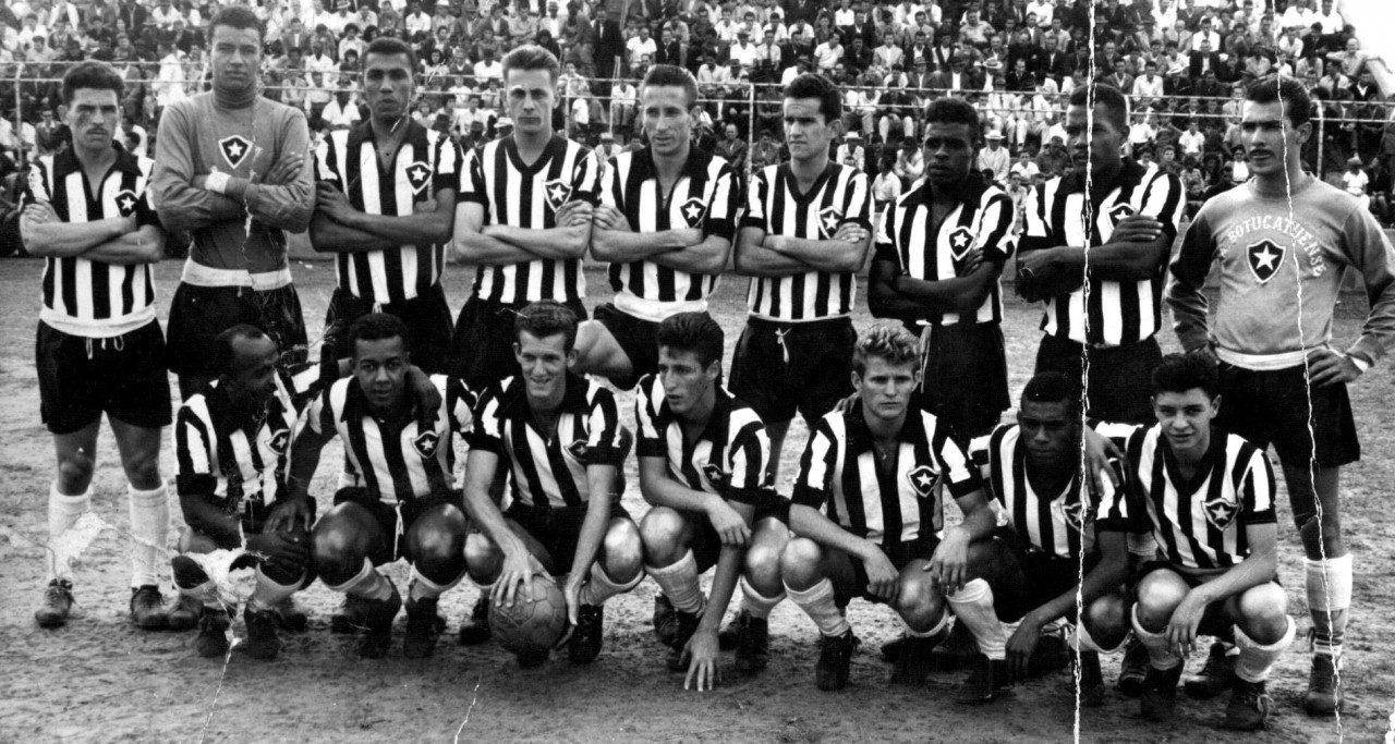 Com o estádio Dr. Antonio Delmanto completamente lotado, envergando tradicional jaqueta alvinegra, posam acima:
