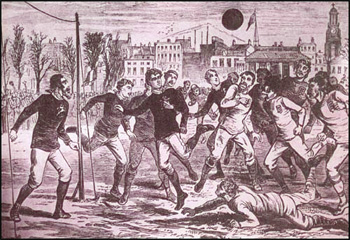 – Outro jogo bastante parecido, o “epyskyros” era praticado em Esparta no século I a.c. por equipes de quinze atletas que chutavam uma bexiga de boi cheia de areia.