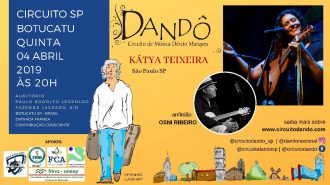 A estreia do Dandô em Botucatu será com a apresentação da cantora, compositora e pesquisadora de cultura popular Kátya Teixeira, que acontece no auditório da Fazenda Lageado, no dia 04 de abril, quinta-feira, a partir das 20h. O show terá a abertura do violeiro e compositor botucatuense Osni Ribeiro.