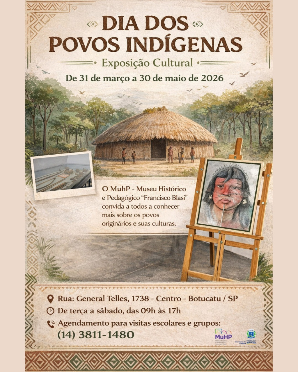 O Museu Histórico e Pedagógico “Francisco Blasi” (MuHP), em Botucatu, recebe até o dia 30 de maio uma exposição que valoriza a contribuição dos povos indígenas na formação do município. A proposta vai além do resgate histórico e convida o público a refletir sobre a presença, a resistência e a continuidade dessas populações ao longo do tempo.