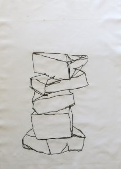 Em meio aos seus afazeres domésticos e compromissos cotidianos, o olhar da artista se detém nos detalhes da paisagem e com esses elementos dá forma a um diário poético de imagens simples: pedras sobrepostas, pilhas de tijolos, roupas penduradas no varal ou dobradas, cargas de caminhão, rosas secas, sacos de lixo.