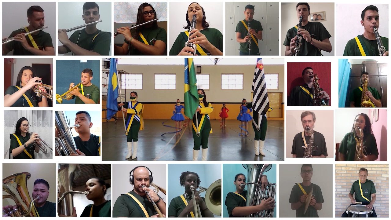 “Pela impossibilidade de desfilarmos , esse foi o meio que achamos para homenagear a Pátria. Um vídeo com 34 quadradinhos com os músicos que gravaram em casa, e um quadradinho maior no meio com as bandeiras e balizas, simulando o desfile”, disse o coordenador do projeto, Claudemir Ferreira.