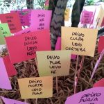 Sentado em frente a um dispositivo de palavras-chaves, cada participante é convidado a fazer uma troca: escolher uma palavra para deixar e outra para levar, seja a partir dos termos à disposição ou de livre escolha, a partir das suas sensações no momento. Ao final, cada participante ganha uma muda, um ramo ou semente e uma indicação poética.