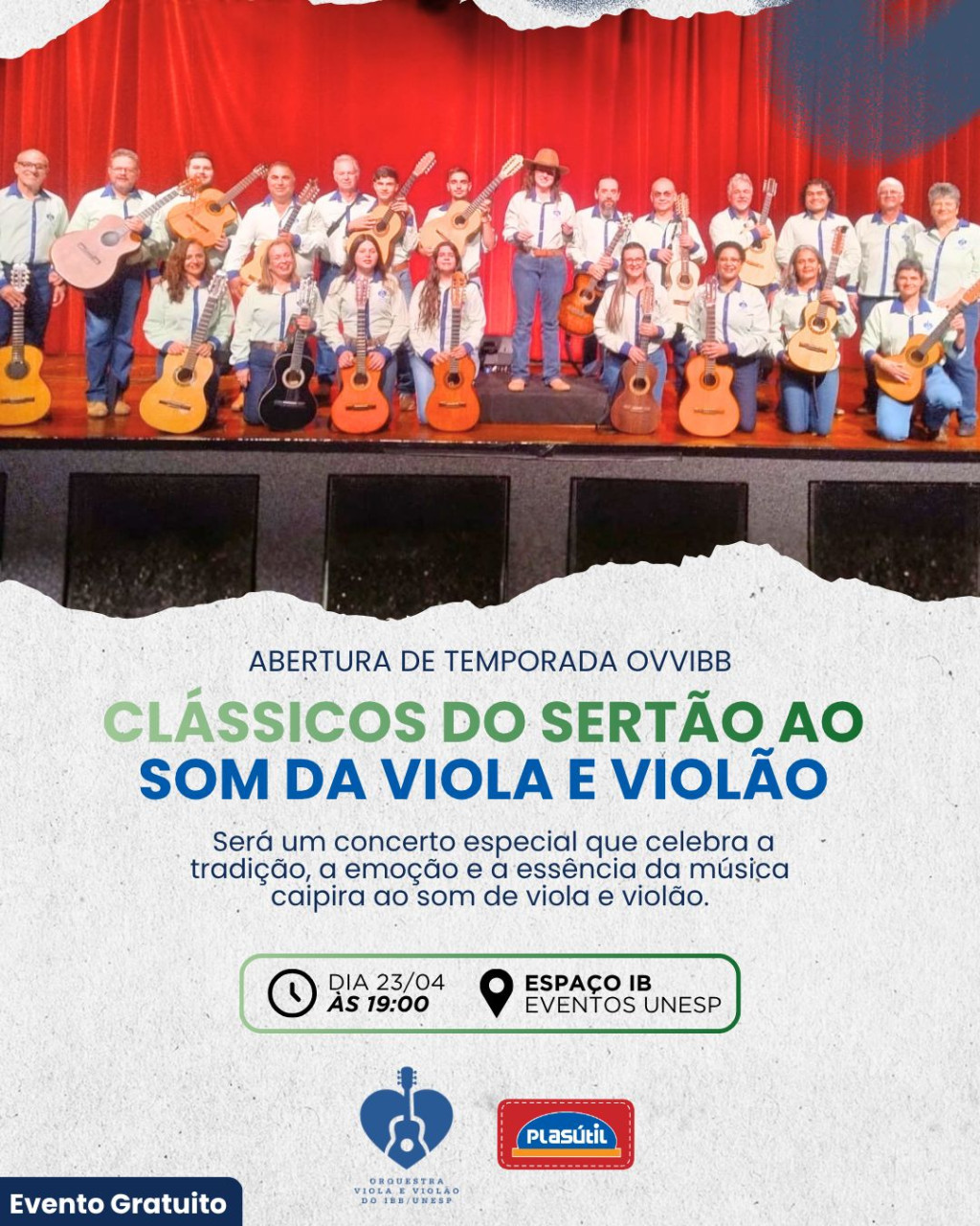 Com o tema “Clássicos do Sertão ao Som da Viola e Violão”, o concerto promete reunir um repertório marcado pela tradição e pela essência da música caipira. A proposta é revisitar grandes sucessos que atravessaram gerações, valorizando a cultura regional e a sonoridade típica do interior paulista.