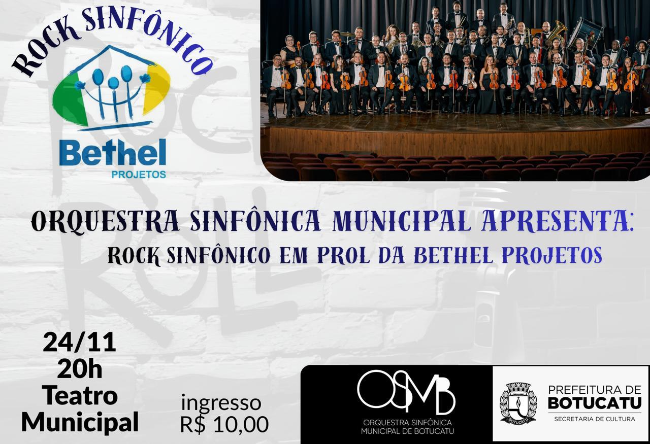 A Orquestra Sinfônica Municipal de Botucatu apresenta no próximo dia 24 de novembro, às 20h, no Teatro Municipal Camilo Fernandez Dinucci, um concerto especial que une clássicos do rock internacional ao poder da música orquestral. O evento, intitulado “Rock Sinfônico”, terá renda revertida para a Bethel Projetos, instituição reconhecida por seu trabalho social no município.