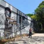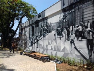 A parede lateral da Galeria Fórum das Artes, ao lado da Pinacoteca, está de cara nova. Uma foto da Rua Amando de Barros de 1920 e outra do artista botucatuense Itajahy Martins, fundador do MAC Museu de Arte Contemporânea de Botucatu em 1984, foram grafitadas pelos artistas paulistas de grafite e arte urbana Clóvis da Silva (Chumbo) e Ricardo Rustice.