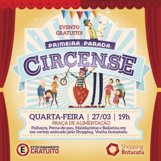 O Shopping Botucatu promoverá na próxima quarta-feira, 27 de março, às 19 horas, a primeira “Parada Circense”. O evento é gratuito e todos estão convidados.