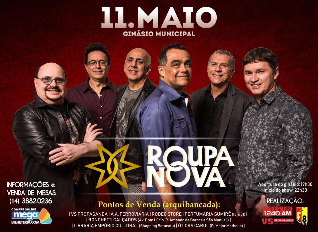A Rádio Municipalista e a empresa VS Propaganda realizarão mais um super show do grupo Roupa Nova em Botucatu. A apresentação será no dia 11 de maio, no Ginásio Municipal de Esportes.