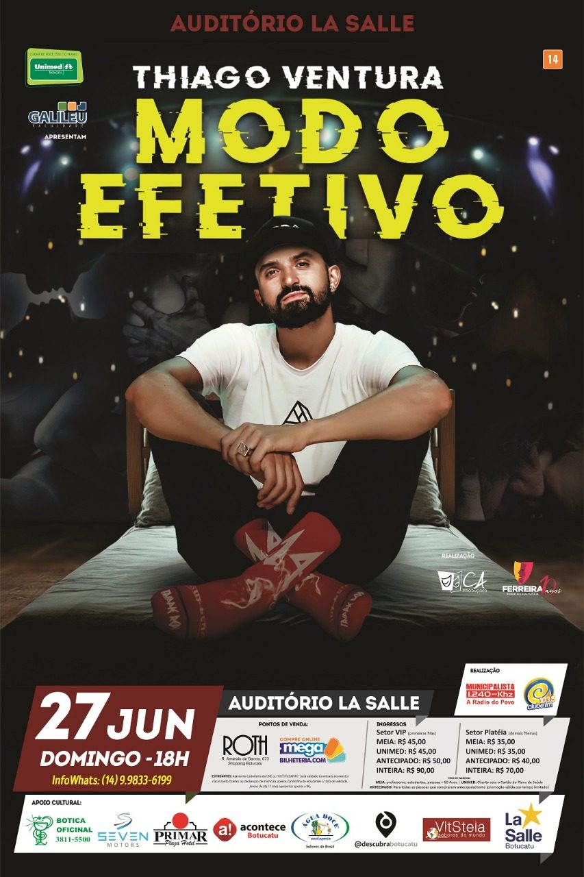 No próximo domingo Botucatu, 27, Botucatu vai receber o Stand Up Comedy de Thiago Ventura. O evento será no Auditório do Colégio La Salle.