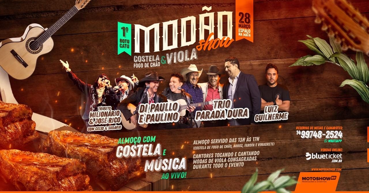 Botucatu e região serão presenteados com a 1ª Edição do Botucatu ModãoShow que será dia 28 de março no Espaço na Mata e traz a música sertaneja raiz como destaque.
