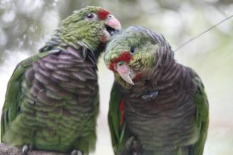 O papagaio-de-peito-roxo, espécie ameaçada de extinção, está sendo reintroduzido no Parque Nacional das Araucárias, no oeste de Santa Catarina. Entre as ações implementadas pelo projeto, que tem parceria com o Instituto Espaço Silvestre, está o trabalho de análises genéticas e educação ambiental da aluna de doutorado, Talita Roberto Aleixo de Almeida, do Instituto de Biociências da Unesp de Botucatu.