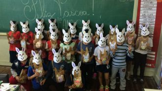 Os presentes foram distribuídos com muito carinho por professores e funcionários da escola. Um detalhe importante, é que os ovos e as máscaras de Páscoa foram arrecadados com os esforços dos próprios professores e funcionários, que custearam essa festa.
