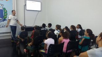 Orientados pelos agentes da Guarda Civil Municipal (GCM), Nóbrega e Jayme, os alunos participaram de uma aula teórica. Por cerca de uma hora receberam orientações de como se comportar no trânsito para que, assim, se tornem multiplicadores de informações levadas a seus familiares.